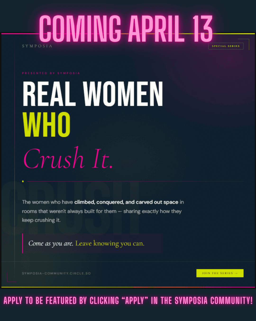 We built Symposia for women who are building businesses, raising families, finding themselves — and often doing all three at once.